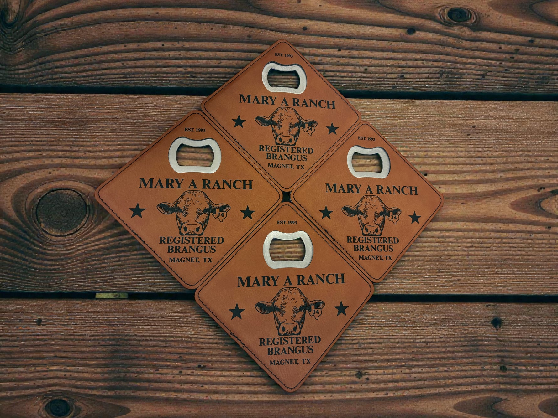 These Leatherette Coaster Bottle Openers are perfect as a Gift or just to add to your tabletop decor. We offer 11 different colors options this allows you to pick what will look the best.
